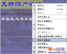 利用金山WPS演示能够制作出多彩的小动画,大家知道吗?首先打开金山WPS演示,用绘图工具绘出图案(或插入剪贴图片),选中图片,右击鼠标,选择自定...