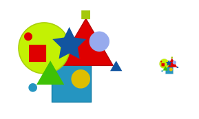"你好,我也是做图标的,我有一个问题:如何合适地缩小一个图标?我做的大图标清晰而且漂亮,但缩小的图标就变得肮脏和讨厌了,我很想纠正这种情形" 在缩小图标的过程中,至少有两点。首先是和人们所能感知的具体特点细节有关,另外是和屏幕分辨率有关。 让我们开始第一项。 对一个大图标(或其他图像) ,我们潜意识对物体的大小进行分类,选出大型,中型和小型。对较小的图标,我们可以更粗略地划分:大(涉及图标大小)和小的物体。小的图标只有很微小的局部,如果一个设计师没有作出特别努力来帮助用户区分它们,那么所有内容都会被混合成一个密集点。 以一个抽象图形为例。在大的版本中,我们可以分辨出3大对象(圆,三角形和正方形) ,然后几个中型物体和一些小件物品。 为了修正这种情形,我们需要清理图形中所有琐碎细节,只留下基本形状(大中型物体) 。 我们已经除去了细小的东西,而现在我们面临着第二个挑战:恢复图标上的大中型物体间的从属关系。事实上,当降低图标大小,我们减少了大中型物体的差异,因此我们要故意地夸大来弥合这一差距。