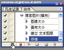 3.在“新动作”面板里为你的动作设置名称和快捷键。本例中动作名称为“博客图片(横向)”,快捷键为“F2”。然后点击“记录”按钮,“动作”面板下边的 “开始记录” 圆形按钮将变成红色按下状态,PS将记录下你的每个动作设置。 |