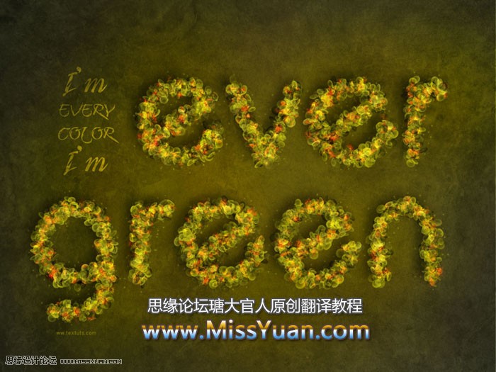 本教程的文字效果非常漂亮,看似有点复制,其实制作过程是比较简单的。先铺好想要的纹理背景,然后自定义一个有立体感的泡泡笔刷,并设置好画笔参数。再用文字的路径描边就可以得到彩色文字。后期再增加一些喷溅等画笔丰富层次感即可。