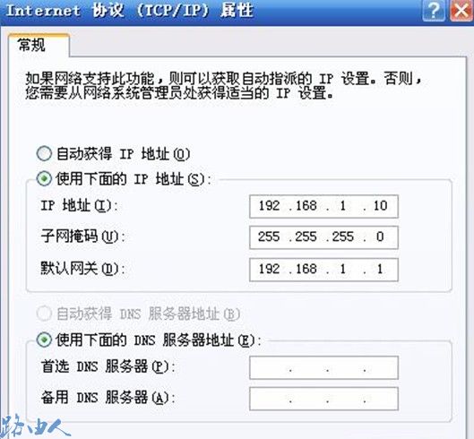 (2)单击“使用下面的IP地址”,输入IP地址192.168.1.X(X范围2-254)、子网掩码255.255.255.0、默认网关192.168.1.1,确定即可。