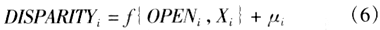 我国幅员广阔,东中西部区域经济差异显著,城乡之间经济和制度环境迥异。土地、劳动、和资本要素在不同的经济区域之间、在城市和乡村之间的边际收益也显著不同。所以笔者认为可以建立截面模型,从对外开放对城乡收入差异的影响人手对要素基尼系数效应进行间接的分析。首先建立以下的横截面模型: