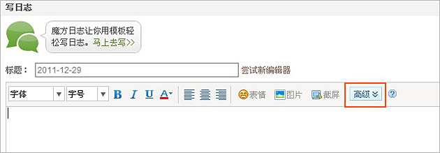 第三步:在日志的旧版编辑页面,点击“高级模式”;
